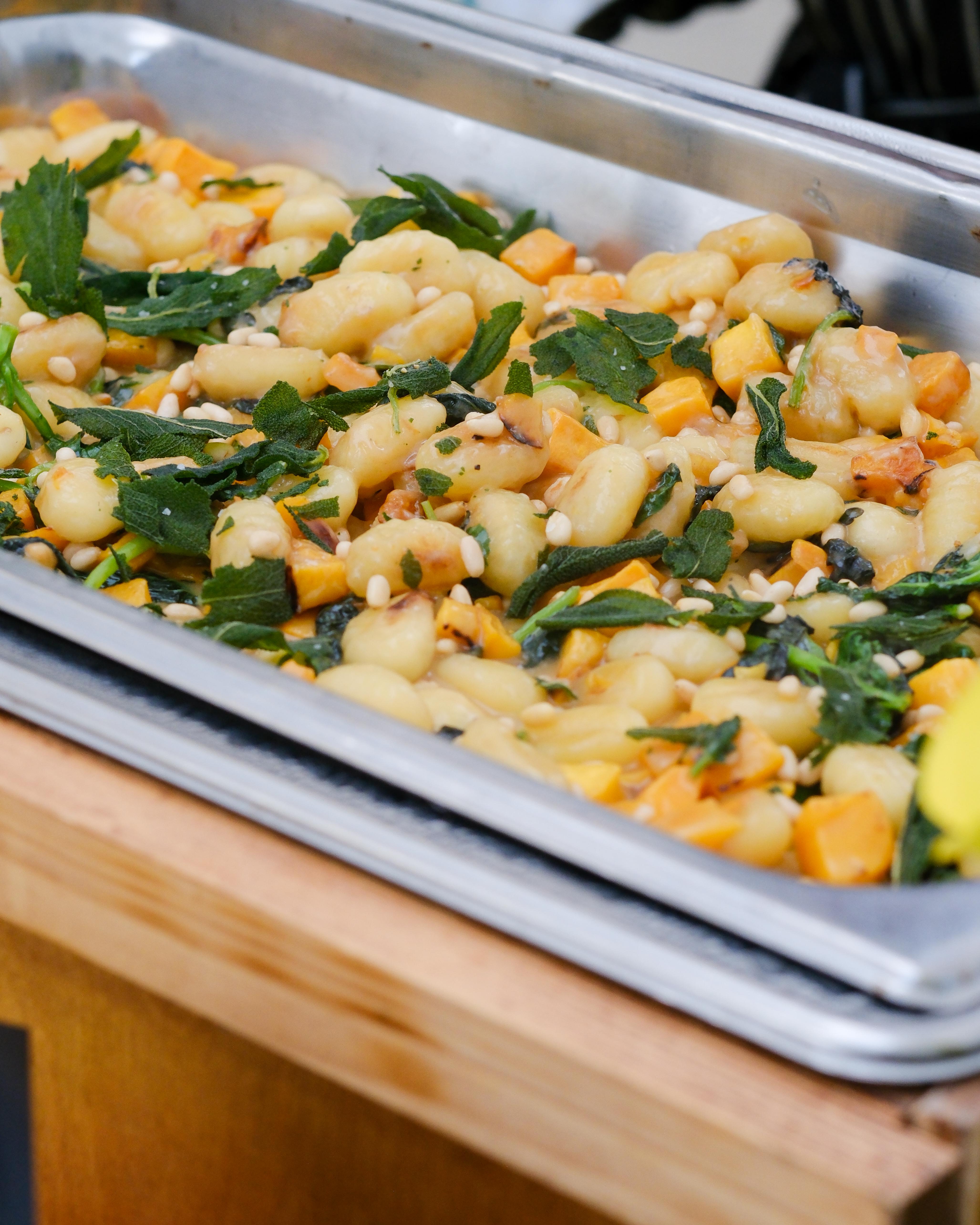 - Butternut Squash Gnocchi with crispy sage, kale, and pine nuts in a brown butter sauce (vegetarian)