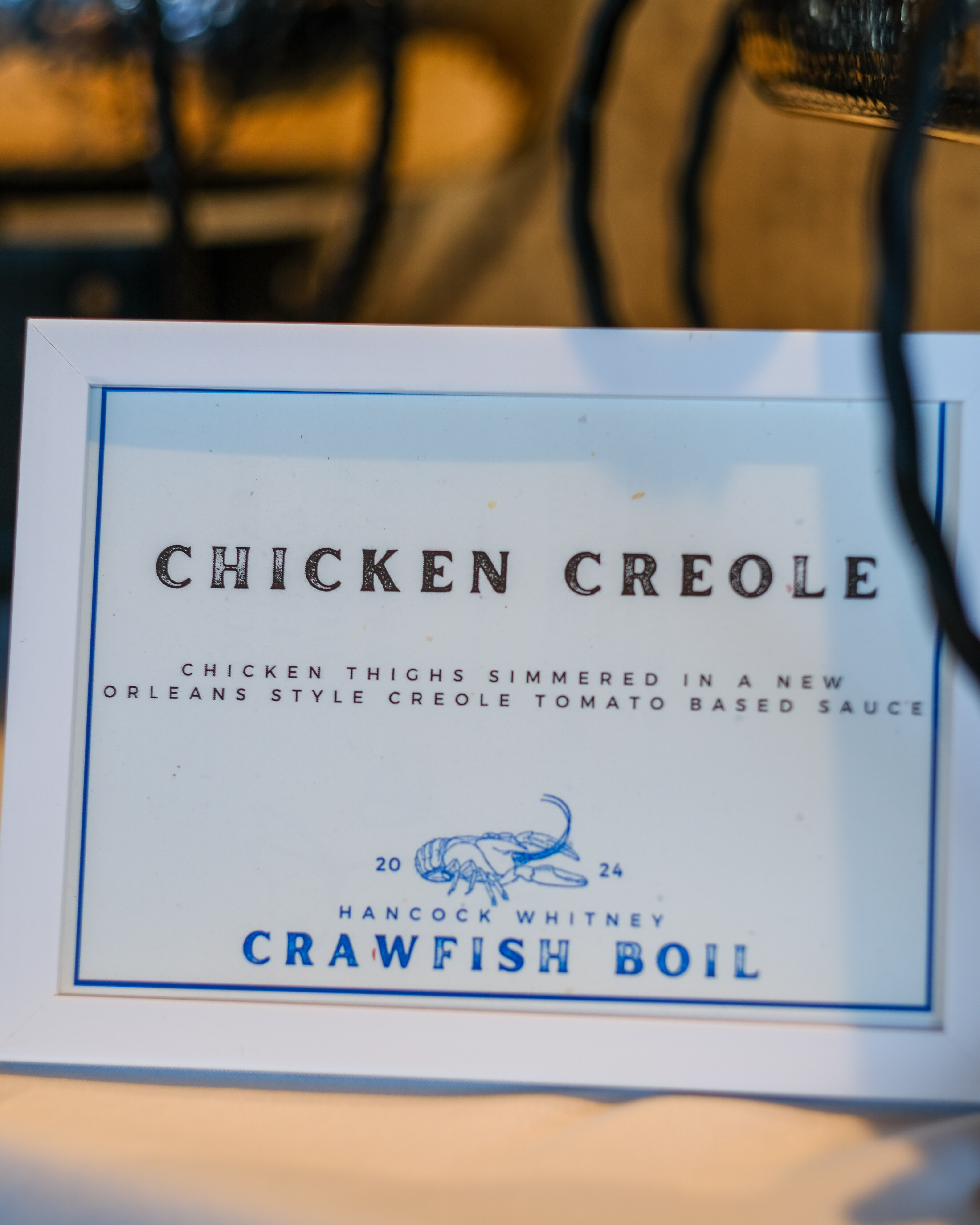 While a true New Orleans boil is a meal in itself, if you are hosting large groups in the Tampa Bay region, we suggest some alternate dishes to please anyone in our crowd. Our menus go beyond the boil itself to include dishes that highlight the depth of Creole cooking. Guests love our Chicken Creole, a slow-simmered tomato-based dish that’s both hearty and comforting. For a vegetarian-friendly option, our Eggplant Étouffée offers the same rich, layered flavors, paired with perfectly seasoned jasmine rice. And of course, a crisp Orleans Salad with Creole mustard vinaigrette balances the meal.